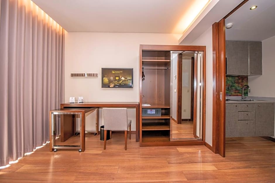 Apartment for 1 pax is 377 square feet and includes either a double bed 131-150 width or 2 single beds 80-130 width.
